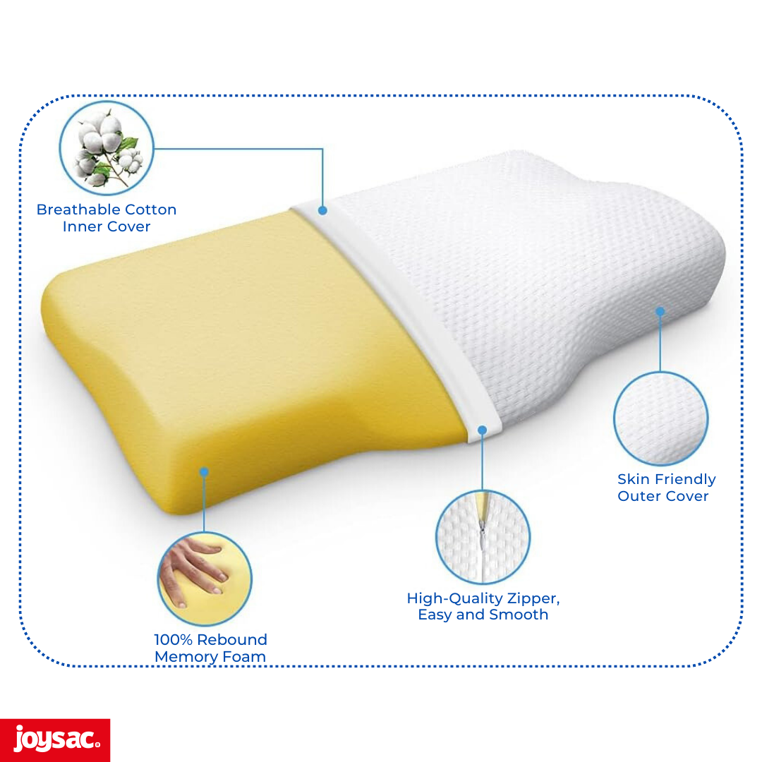 JoySac Memory Foam Cervical Pillow: Contour pillow for Neck pain. The Ultimate Comfort for Your Sleep
